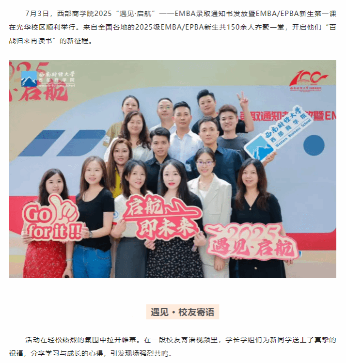 百年西财·遇见启航丨2025级EMBA录取通知书发放暨EMBA/EPBA新生第一课顺利举行