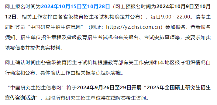 考生注意!2025研考报名时间、初试时间定了