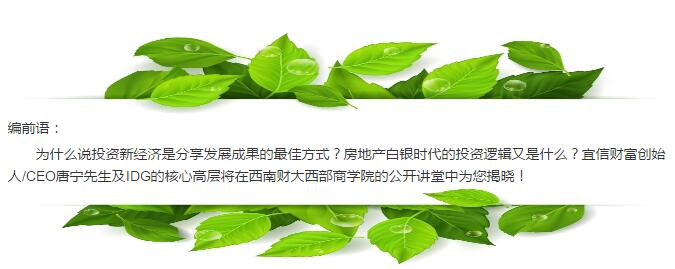 公开讲座报名‖金融大咖:宜信携手IDG资本畅谈“拥抱新经济,美好生活时代将如何变革?