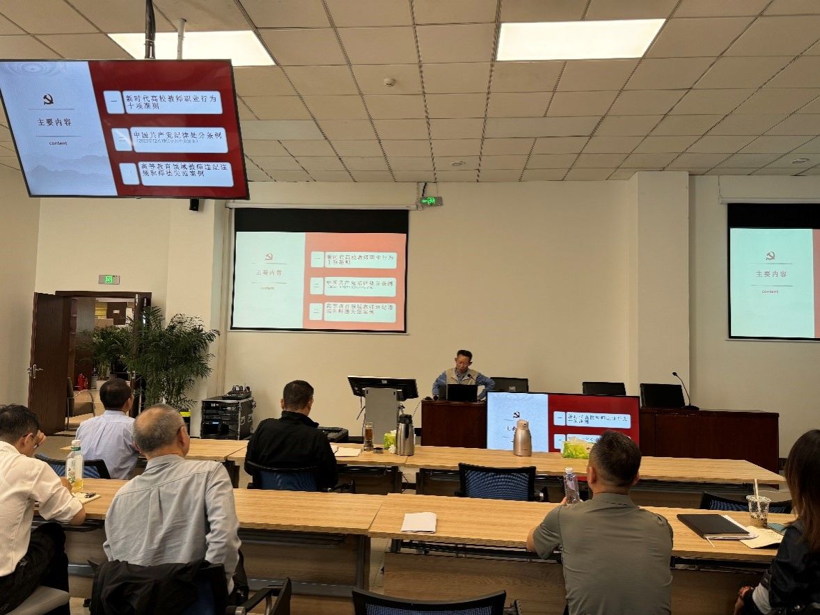 文洪毅传达学习了习近平总书记在二十届中央纪委三次全会上的重要讲话精神和公司2024年全面从严治党工作会议精神,并就mk体育党总支关于开展党纪学习教育的工作计划向大家进行了介绍和说明。会议强调,全体党员、教职工要深学细悟习近平总书记关于党的自我革命的重要思想,更好地理解全面从严治党的深刻含义,广大党员尤其是党员领导干部要学纪明纪,增强纪律意识,严于律己、严负所责、严管所辖,守住纪律底线。文洪毅还为大家开展了师德师风专题学习暨警示教育。他首先带领大家重温了《新时代高校教师职业行为十项准则》,强调作为高校教师,要严守底线、学为人师,行为世范。随后,他为大家进行了《中国共产党纪律处分条例》(以下简称《条例》)导学,着重讲解了2023年12月8日中共中央政治局会议第三次修订的主要内容,指出党中央时隔5年再次修订《中国共产党纪律处分条例》,就是要贯彻落实党的二十大战略部署,不断完善纪律规矩,始终坚持严的基调,释放从严治党越来越严、越往后执纪越严的强烈信号。最后,他结合《高等教育领域教师违纪违规和师德失范案例(2024年第1期 总第18期)》整理的案例为大家进行了典型案例警示教育,再次提醒大家严格遵守高校教师职业行为“红线”,强调以案为鉴、警钟长鸣。